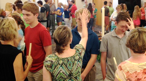 Parents bless their children during an opening ritual for Confirmation candidates at Holy Rosary and Nativity parishes in Evansville. “This kicks off the preparation for the Sacrament of Confirmation,” writes Carol Ann Gaddis, DRE. Above are Melissa and Max Meuth, Kim and Aiden Krutchen, and Kristen and Jacob Girten.