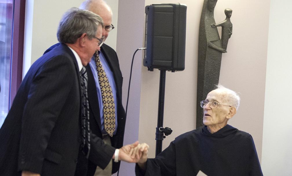 Benedictine Father Damian Schmelz, retired pastor of St. Henry Parish in St. Henry and a monk of Saint Meinrad Archabbey in St. Meinrad, was named a Sagamore of the Wabash at a Nov. 5 ceremony at the monastery.