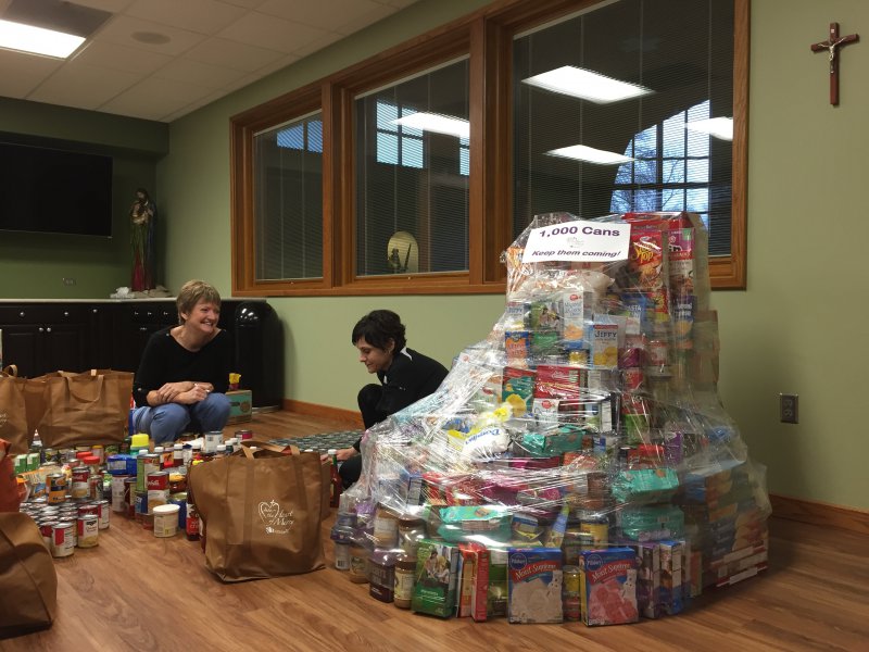 St. John the Baptist Parish in Newburgh recently embarked on a Lenten Food Drive to celebrate the Extraordinary Jubilee of Mercy. The goal was set at 10,000-or- more shelf-staple grocery items – a tremendous response to help feed the 100-140 households in the 47630 zip code served monthly by the Newburgh Area Food Pantry.