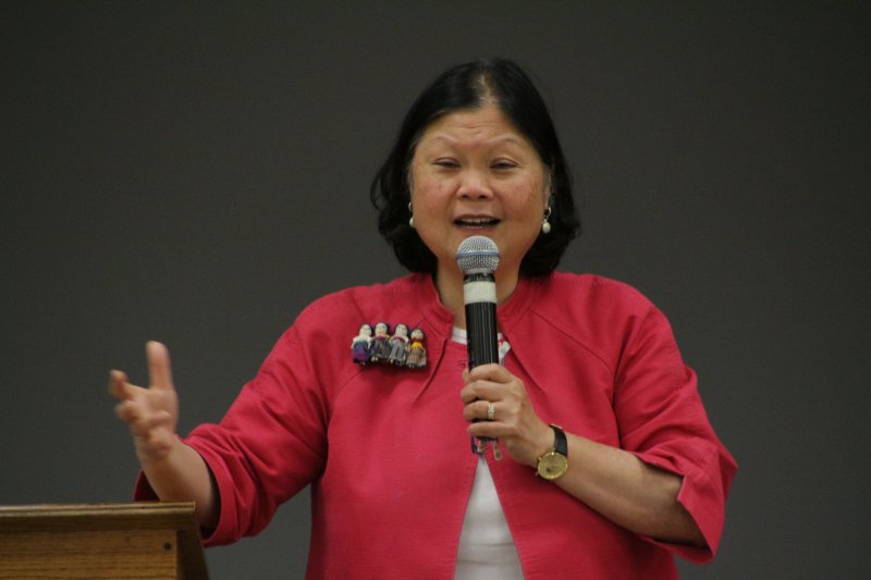 Dr. Carolyn Woo left a few minutes at the end of her keynote presentation during the Diocese of Evansville’s Oct. 20 Respect Life Celebration to take some questions from the audience. The first person to raise a hand proved barely able to speak.