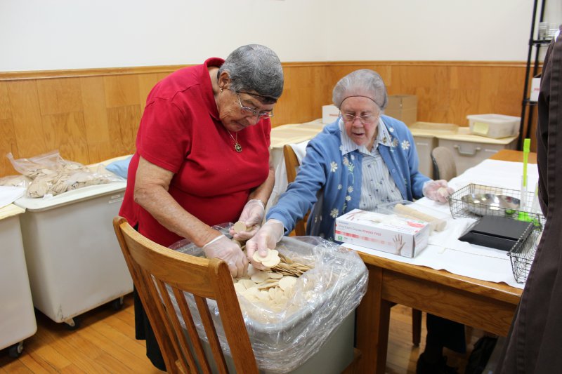 Since last October, around 10-14 senior Sisters of St. Benedict, including some from the Hildegard Health Center, have been sorting and packaging the communion hosts, which are sent out from the Monastery Gift Shop. Sisters Mary Leah Baehl and Beata Mehling coordinate the sorting and packaging, while Angi Seffernick, co-director of Monastery Goods and Services, manages the business end.