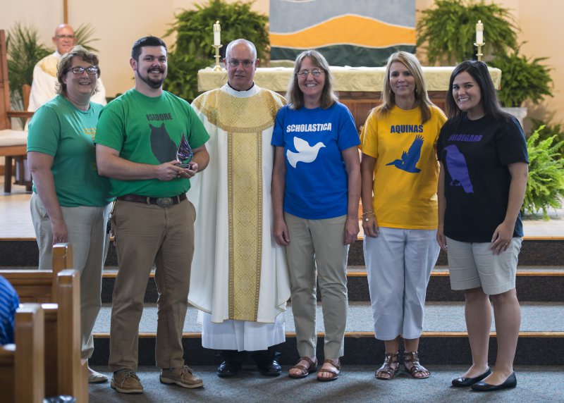 Winners of the 2017 Catholic Educator Innovative Awards were announced during the Aug. 1 back to school gathering and Mass held at St. John the Baptist School in Newburgh. Hallie Scheu, principal of St. Wendel School in St. Wendel, and Resurrection Middle School Teachers in Evansville were named as this year’s recipients.