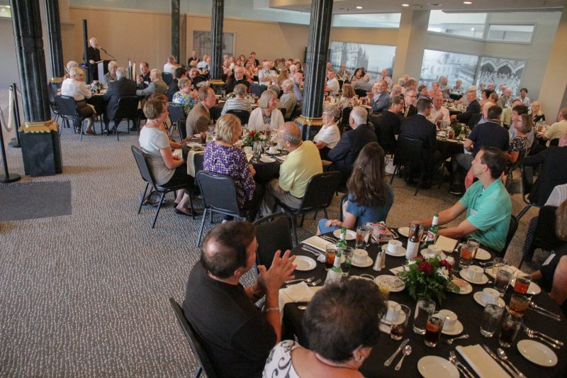 Father Robinson went on to discuss the graduate-degree program and the permanent diaconate program, noting that St. Meinrad was collaborating on development of a Spanish-speaking diaconate program. He also mentioned the “One Bread, One Cup” summer program for youth and young adults, noting that it had expanded this year for the first time to the Conception, Mo., campus of Conception Seminary and college. Conception President-Rector Benedictine Father Brendan Moss is a priest of St. Meinrad, and Father Robinson told the crowd that Father Moss called the OBOC program at Conception very successful.