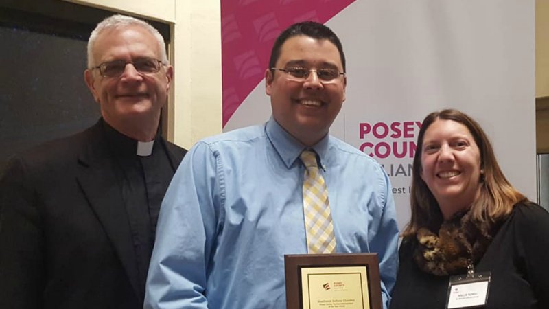 The Posey County Alliance presented Ryan Nowak, a fifth-grade teacher at St. Wendel Catholic School in St. Wendel, with the 2018 Posey County Teacher of the Year award at the Southwest Indiana Chamber’s annual Report to the Posey County Business Community Dinner.