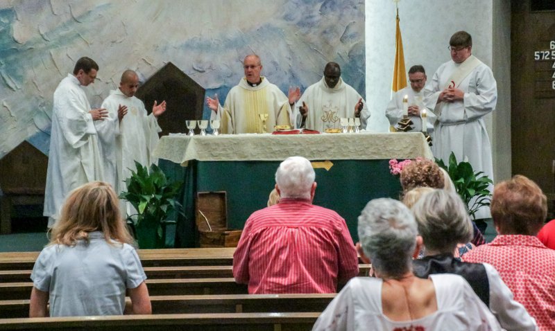 Father Bernie Etienne, pastor of Holy Rosary Parish, concelebrated the Mass with Father Homero Rodriguez, Holy Rosary associate pastor, and Father Pascal Nduka, associate pastor of Annunciation Parish. Deacons Chris Borowiecki of Holy Rosary, John McMullen of Annunciation and Luke Hasler, who is serving through the summer at Holy Rosary.