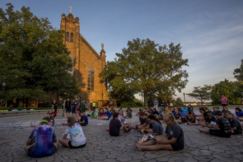 On July 9, campers stayed at the Saint Joseph Parish Center for talks, games, eucharistic adoration and confession. The concluded with s’mores and a DJ on the plaza. On July 10, the group traveled to God’s Country in Perry County for a day of prayer and meditation on the Stations of the Cross. On July 11, campers split up for community service. Some went to four of the local nursing homes to visit with residents; some went to Restore; some went to Memorial Hospital Health Care’s Hope Garden; and the others went to the local parishes to assist with cleaning.