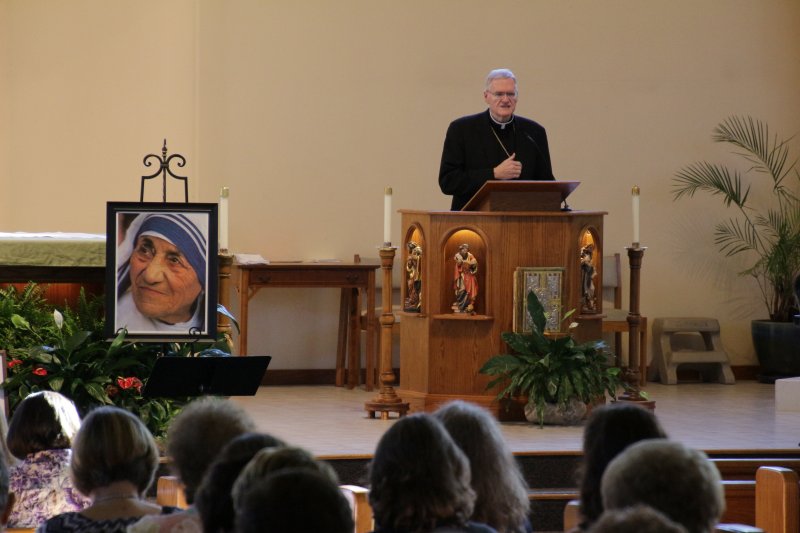 Bishop Joseph M. Siegel greets more than 250 women who attended the third annual “Gather in Faith Conference” at St. John the Baptist Parish in Newsburgh. Bishop Siegel led opening prayer for the daylong conference, then got a selfie with attendees. Michele Faehnle and Emily Jaminet from the Friendship Project served as keynote speakers. Breakout-session leaders included Father Chris Forler, Father Tyler Tenbarge, Dominican Sister Anastasia Reeves, Gene and Beckie Schadler, Dr. Kathy Elpers, Barb Butler and Leigh Gray.