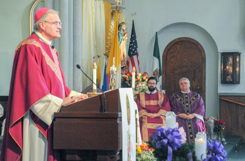 In his homily, Bishop Siegel recounted the story of Our Lady’s appearance in Mexico to St. Juan Diego in December 1531. He also discussed the pilgrimage he made a couple of years ago to the Basilica of Our Lady of Guadalupe near Mexico City. He celebrated Mass there, and related the spiritual power of that holy place and the deep faith of the other pilgrims who were there during his visit.