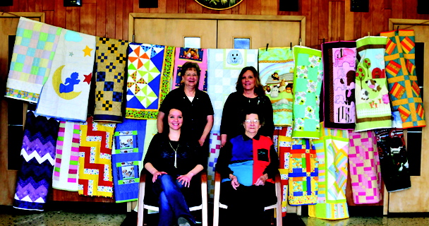It was a happy scene that Catholic Charities' Director Sharon Burns and Event Planner Kathy Wilkerson walked into on a recent Saturday afternoon at Evansville’s Nativity Church. Twenty-four handmade baby quilts hung over the doors to the sanctuary – and four members of the Brockman family beamed as they watched the visitors' reactions.
