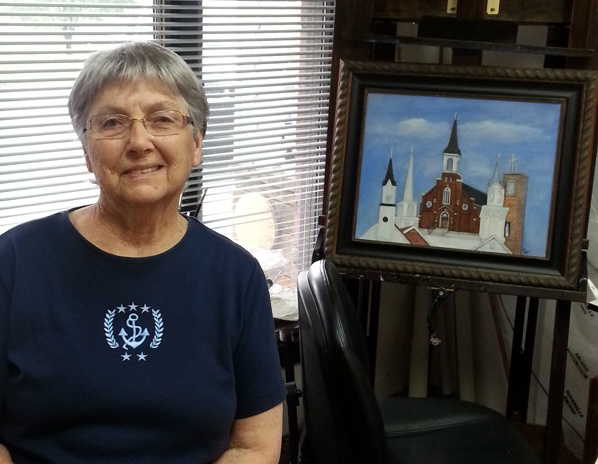 Pauline Holtz, a member of St. John Parish in Loogootee and well-known area artist, has created a painting commemorating the four Martin County parishes that are about to merge as part of the Diocese of Evansville’s Strategic Plan.