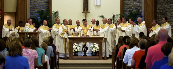 “The theme for the Catholic school year here is ‘A Family of Families’ … ‘Una Familia de Familias’ … and we have all sorts of families,” Bishop Thompson said. “The presbyterate – all of our priests – is a family. Clerics – our priests and deacons – represent a family.”