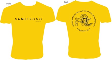 If you can’t make it, you can order shirts online at www.samstrong.org. Money raised is used for brain-tumor research at St. Jude Children’s Research Hospital. Sam Featherstone, a life-long member of St. John the Baptist Parish in Newburgh, died Jan. 2, 2013 after battling brain cancer for more than three years.