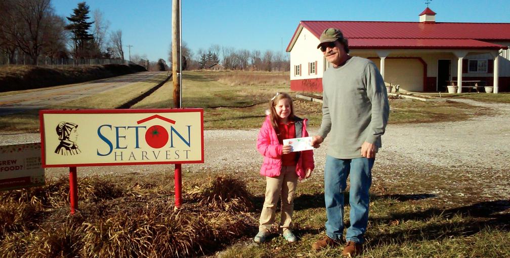 “I donated the five dollars and ten dollars of my own money. I asked my grandparents and parents for money to help. All together I donated $55 to Seton Harvest. I met farmer Joe and Julie who work at the farm. They taught me about the different growing seasons and how they use the land to serve God.”