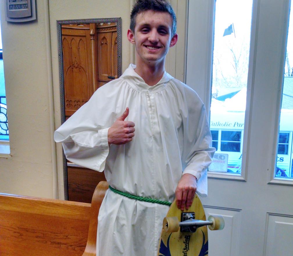 “On Sunday, despite seven degree temps and no vehicle to drive, Blaine rode his skateboard five blocks to church. All of us at St. Peter thank you Blaine for being a faithful servant.” Blaine is a senior at Washington Catholic High School.