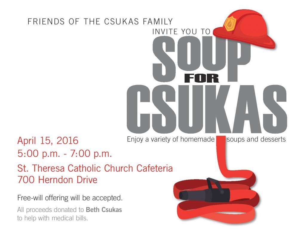 Friends of the Csukas family from parishes across the Evansville area have organized a fundraiser, “Soup for Csukas,” which will be from 5 p.m. CDT to 7 p.m. CDT on April 15 in the St. Theresa Parish cafeteria, 700 Herndon Drive, Evansville, IN 47711. A variety of homemade soups and desserts will be available, and a freewill offering will be accepted. All proceeds will benefit Evansville firefighter Beth Csukas, who continues recovery and rehabilitation from severe injuries she suffered in a January traffic accident on I-69 near Bloomington. Diane Csukas, Beth’s mom, is sales and office coordinator for The Message.