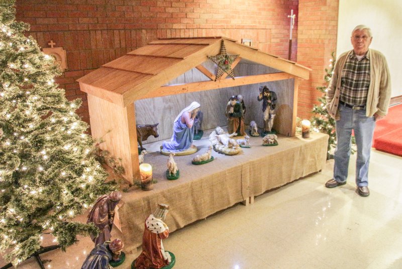 Enter resident Ben Nellis, his son John and daughter-in-law Becky. When St. Benedict Cathedral obtained a new set of figures for its Nativity in the sanctuary, the parish generously donated its old statues to what is now known as University Nursing and Rehabilitation. The Nellis family built the stable for the Nativity scene, and an anonymous benefactor restored the statues. The Nativity is on display in the home’s St. Joseph Chapel on the first floor.