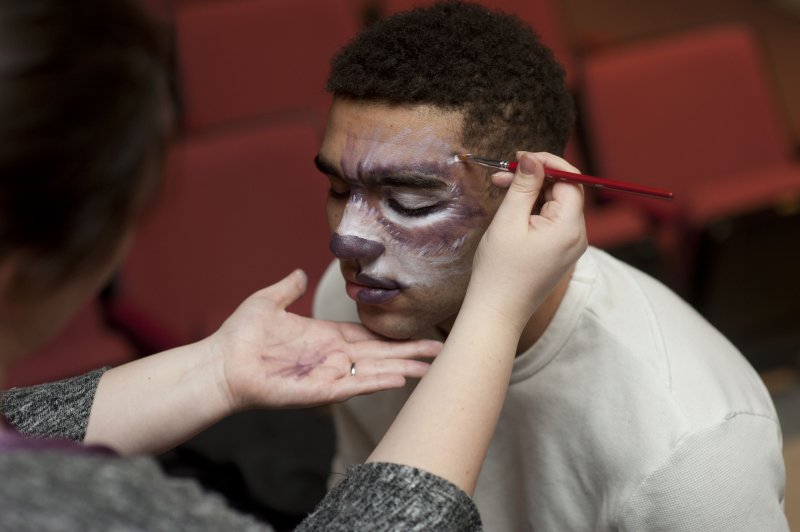 Sam Fulton gets into his role of The Big Bad Wolf for the Mater Dei High School Theater Department’s presentation of “Into the Woods,”which opens in the Kempf Auditorium at 7 p.m. CDT on March 22 and runs through March 24. Tickets are available at the door for $10.