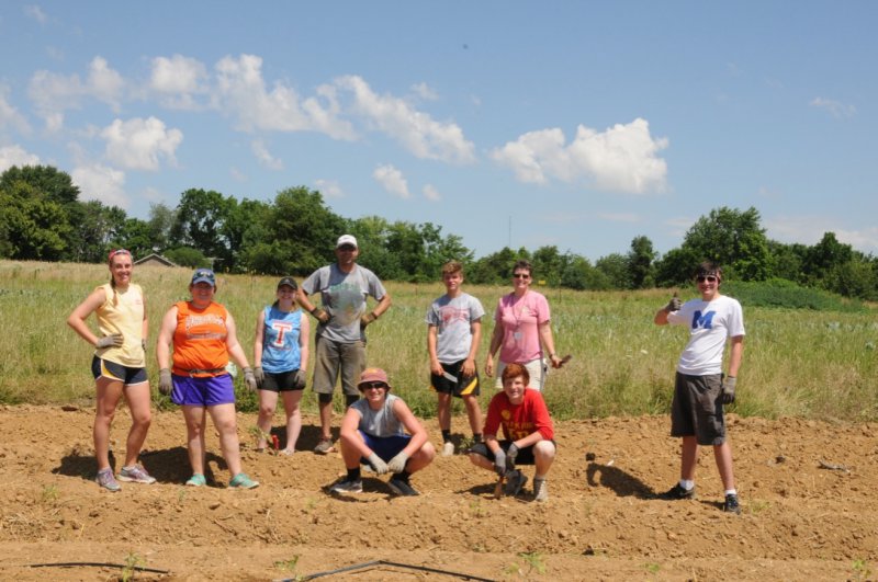 The 58 students joined youth ministry coordinators and educators from the diocese to volunteer at 12 local organizations, including Habitat for Humanity, the Ozanam Family Shelter and Seton Harvest. At Seton Harvest, students worked in the community garden planting tomatoes and pulling up onions.