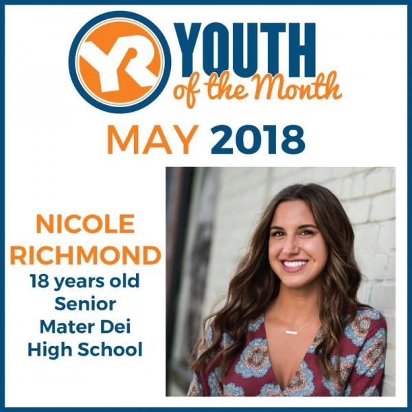 Five years after her death, Melanie’s light continues to inspire her younger sister. As a freshman, Nicole joined a team of students to organize the Mater Dei Dance Marathon, a dance-filled fundraiser for Riley that her oldest sister, Victoria, helped start in 2010. Nicole’s dedication to MDDM as a four-year member and two-year executive council member who personally raised more than $7,700 for this year’s event prompted Victoria to nominate her for Youth Resources’ May Youth of the Month honors.