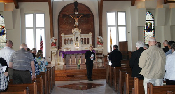 Bishop Charles C. Thompson closes the March 15 evening prayer service during the Appreciation Night for Priests organized by Knights of Columbus Council 10257 of St. Clement Parish in Boonville.