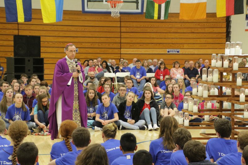 During the March 13 closing Mass in the Memorial High School gym, Bishop Charles C. Thompson suggested that the collective opportunity Source Summit provides has a foundation in the day’s Gospel reading – the story of the woman caught in adultery – and the “bullies” who used her to try to undermine Jesus.