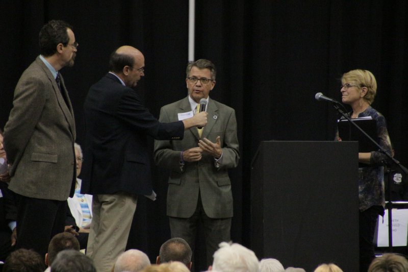 The pair elicited cheers from the large audience when they announced that the commission already is in place and had met for the first time on April 12, with another meeting scheduled for May.