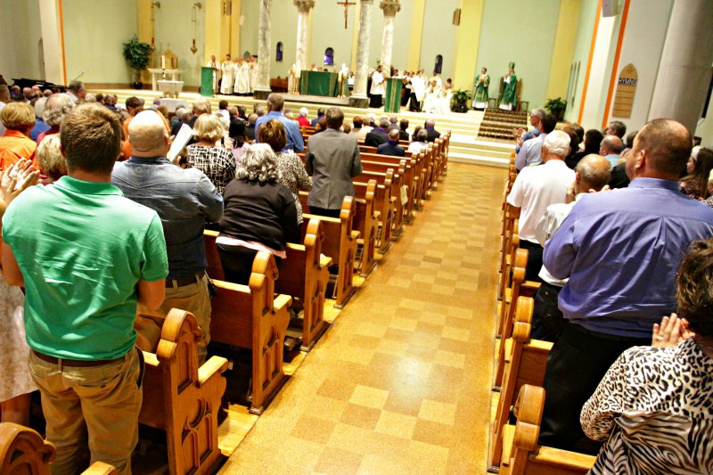Bishop Charles C. Thompson welcomed 112 men and women from across the Diocese of Evansville as new members of The Bruté Society during the Oct. 30 Mass and Induction Ceremony at St. Benedict Cathedral in Evansville. Twenty priests of the diocese concelebrated the Mass with Bishop Thompson.
