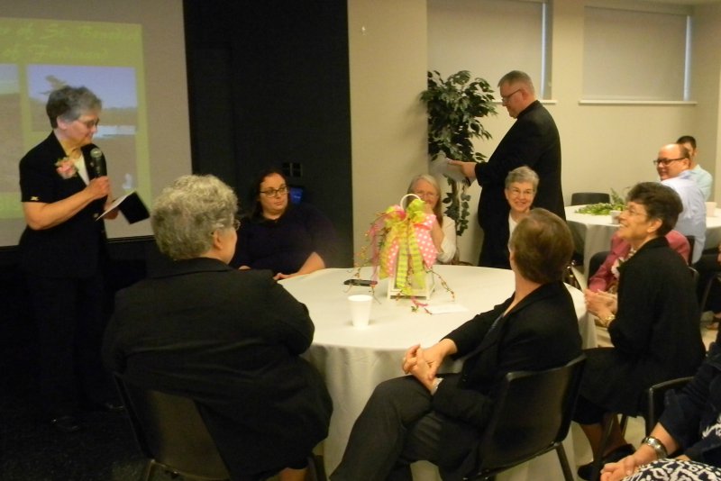 The Woodward Hospitality Center at St. Benedict Cathedral School was overflowing on April 30 with visitors and well-wishers as the community celebrated the upcoming retirement of Benedictine Sister Karlene Sensmeier and teacher Pete Werner, and the Golden Jubilee of Benedictine Sister Judy Dewig - three vital members of the St. Benedict school faculty.