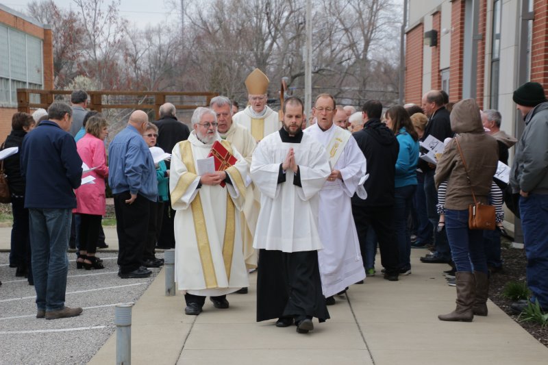 At St. Clement Parish, the tradition of the prayerful processions continued as attendees gathered at the parish prayer garden for opening prayers, processing into St. Clement Church for Mass. At the conclusion of Mass, attendees gathered at the back of the sanctuary, where Bishop Siegel blessed bags of soil and seeds.