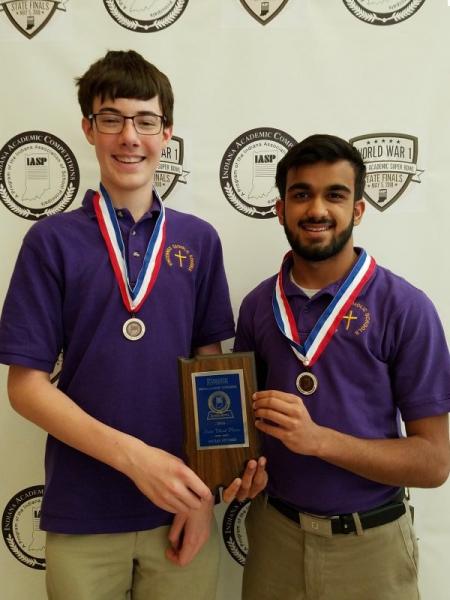 Rivet High School in Vincennes earned first place in the Social Studies division, second in science and third in math and interdisciplinary standings at area competition. Social Studies team members Grant Freeman, Rahul Bajaj and coach Joe Keller traveled to Purdue University in West Lafayette to compete in the State final competition held May 5, earning third place in the state.