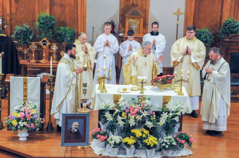 The Posey County parish hosted First Class Relics of St. Pio of Pietrelcina, more commonly known as St. Padre Pio, on May 1. The relics were available for veneration throughout the day leading up to a Votive Mass, which concluded the day. About 300 people filled the pews at St. Philip Church as Bishop Siegel celebrated Mass.
