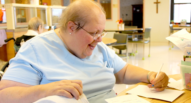 In the nomination letter for Sister Michelle, Hildegard sisters and staff wrote, “Sister’s cheerful presence . . . through phone and mail . . . letting (others) know of her prayers and concerns . . . Sister has developed a greeting card writing ministry reaching out to many . . . (she) notices those around her who need assistance and encouragement . . . initiates conversation and activities . . . enjoys sharing with others . . . shares her positive attitudes . . . takes an active role in her own health, (motivating) others to stay active. . . .”