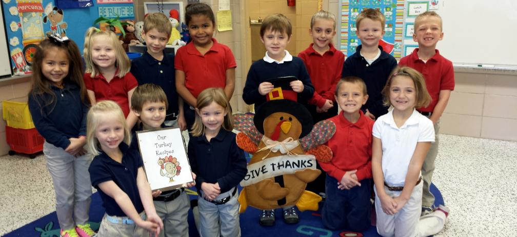 The kindergarten students at Westside Catholic School in Evansville offer tips on preparing turkey for the holiday, thanks to a little help from their teacher Carol Spillman.