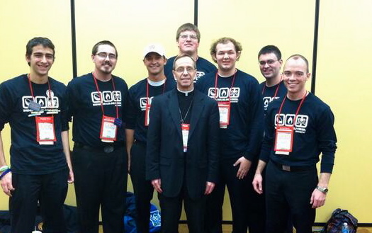 Bishop Charles C. Thompson is joined by seminarians from the Diocese of Evansville during the National Catholic Youth Conference in Indianapolis. Twenty-five thousand youth and adults were expected to attend the conference at the Indiana Convention Center and Lucas Oil Stadium from Nov. 21 through Nov. 23.