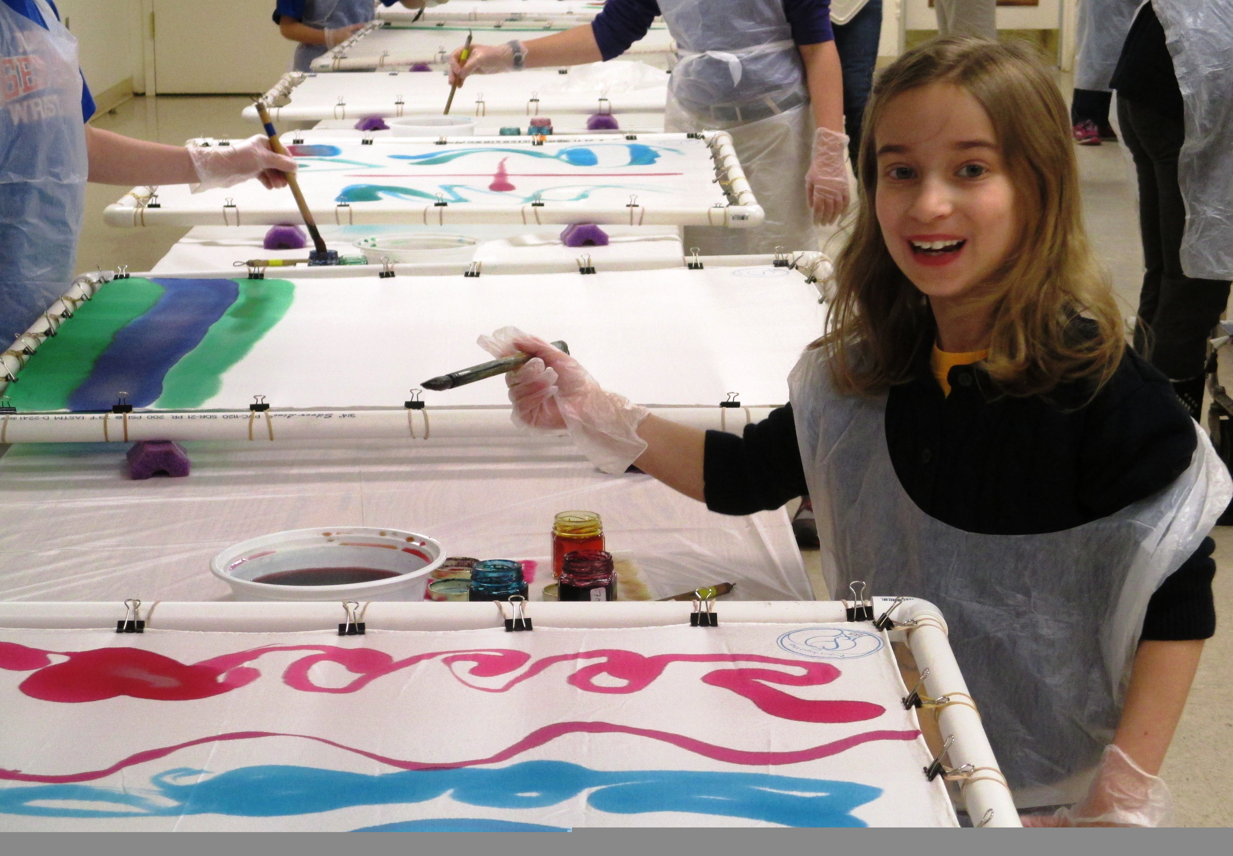 Third-grader Anna Poole was very excited because the red heart at left appeared on her scarf as she painted. "It wasn't me! It just happened!" she kept telling people excitedly.