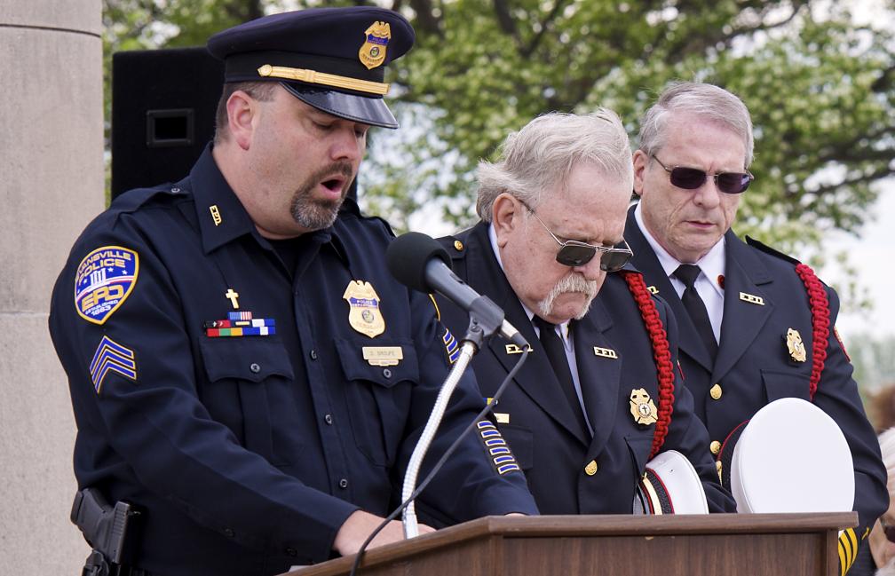 Evansville Mayor Lloyd Winnecke then proclaimed May 1, 2014, as the National Day of Prayer in the City of Evansville, and Sgt. Darren Sroufe with the Evansville Police Department offered a prayer for all first responders.