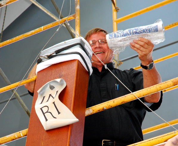 A time capsule was also prepared for insertion into the cross. Items included a copy of Sept. 27, 2013 issue of The Message which included the publication of the decree that created a new parish through the merger of St. Nicholas with St. Joseph Parish in Dale and Mary, Help of Christians Parish in Mariah Hill. The merger takes effect July 1, 2015.