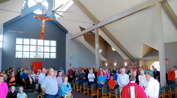 “Seven years ago, the subject of renovations came up,” Father John said during his homily. “Someone said, ‘you need a crucifix in that church.’ Well, we have one now; and we have raised the altar up; and we have kneelers.”