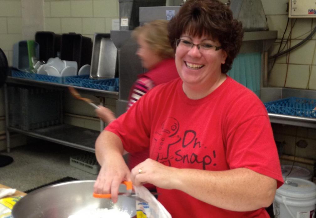 Erin Helfrich prepares icing for kuchens which will be sold by volunteers at Resurrection School in Evansville during the 2014 Fall Festival.