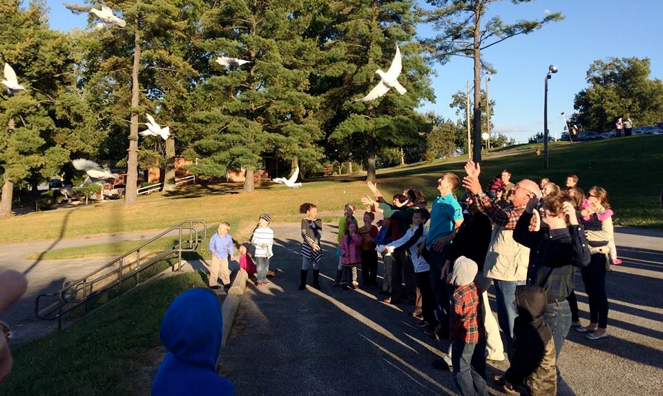 Following Mass at St. Joseph in Dale, members of the three parishes released white doves. Festivities continued in the St. Joseph Parish Center with a simple meal of soup and tacos, and a short video on the life of St. Francis. After dinner, parishioner Ron Balbach provided a hayride, and other parishioners displayed donkeys and sheep to help everyone appreciate and share St. Francis’ love for animals and all God’s creation.