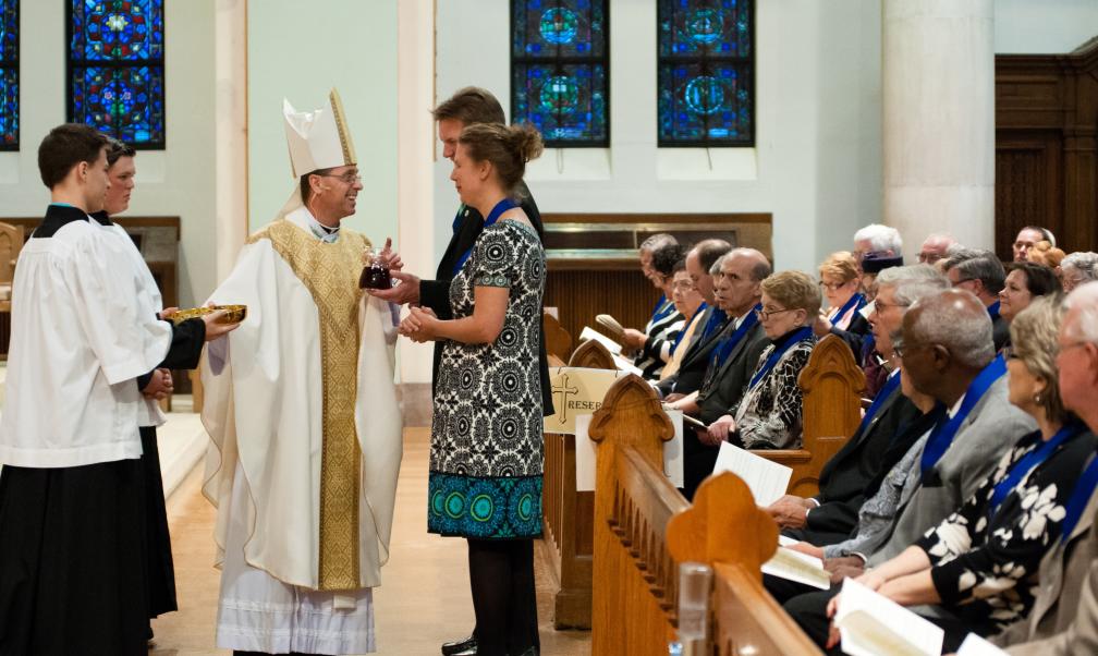 Following his homily, Bishop Thompson recognized all of the 2014 inductees and presented them with the Simon Bruté Medal, the special symbol of membership in the society.