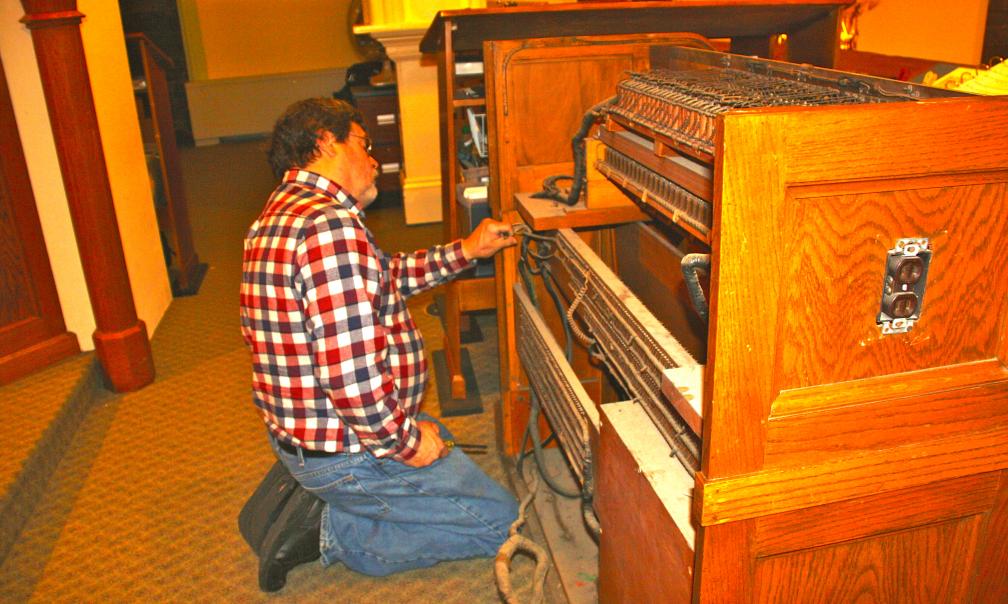 St. Mary’s previous pastor, Benedictine Father Godfrey Mullen, in consultation with the pastoral council, finance committee, and buildings and grounds committee, began the discussion of restoring the organ. The original 75-year-old wires and electric cables were brittle, and there were a number of manual keys and pedal keys that no longer functioned. Mice also had eaten some of the brittle paper that covered the original wires.
