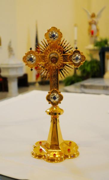 Since the fourth century, it has been a tradition to place a saint’s relic in a church’s altar stone, a practice that “keeps our ties with the ancient Church,” Father Hilderbrand said. Though this practice has not been mandatory since 1983, according to the Ceremonial of Bishops, it “should be preserved, if possible.” Relics are also often placed in reliquaries – ornate display stands that hold thecas, the small cases in which relics are protected.