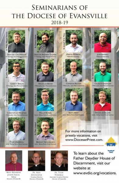 The Diocese of Evansville Vocations Office's 2018-2019 Seminarians Poster is available now in digital form. The poster can be viewed and downloaded from the URL below.