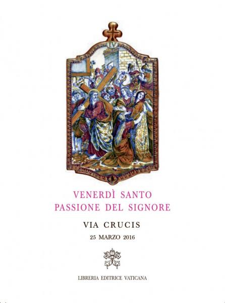 The Vatican publishing house, Libreria Editrice Vaticana, printed booklets with the complete texts of the prayers and meditations. They were to be handed out free of charge to people joining the pope at the Colosseum and available for sale at the Vatican bookstore.