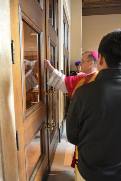 The sound could be heard even at the front of Sts. Peter and Paul Cathedral in Indianapolis—three solid knocks by Archbishop Charles C. Thompson on a door from the narthex, seeking entrance to the cathedral he would officially “possess” the next day.