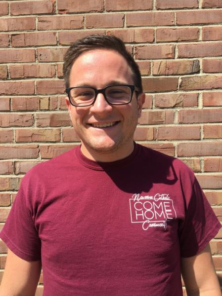 Gehlhausen works with Director Christine Hoehn at the University of Southern Indiana Newman Center.